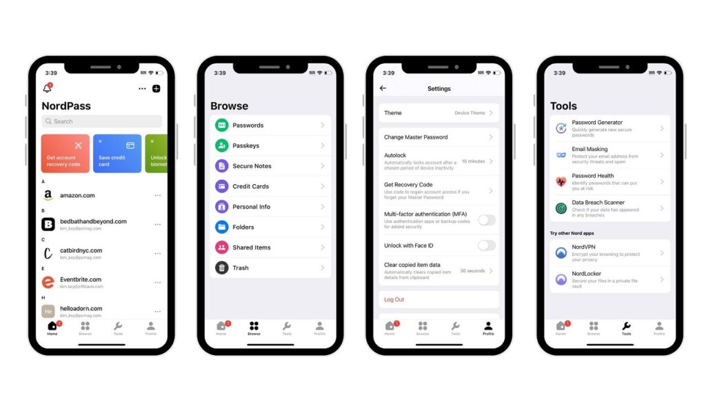 Coffre-fort sécurisé : NordPass stocke l’ensemble des mots de passe et informations sensibles dans un coffre-fort chiffré, accessible uniquement via un mot de passe principal.